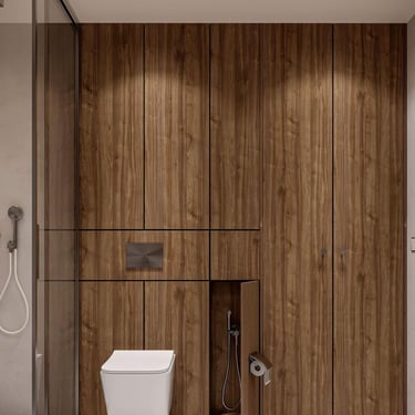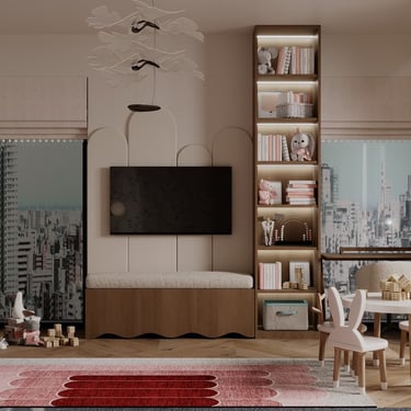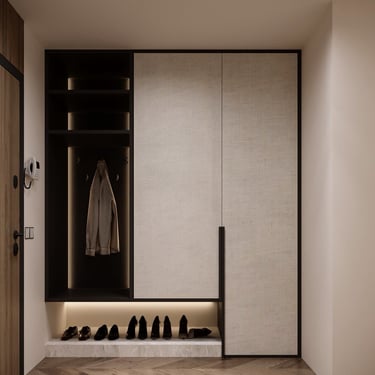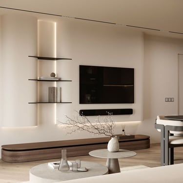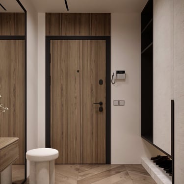Разнообразието от форми и текстури позволи да се създаде този динамичен, но в същото време уютен и добре структуриран дизайн. Спокойната цветова гама и качествените материали са основните герои на нашата приказка, наречена "Дом".